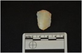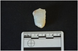 | Description / विवरण | Flake struck on quartz, bulb of percussion seen, use wear marks visible |