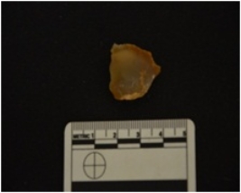 | Description / विवरण | Flake struck on chalcedony, use wear marks visible |