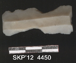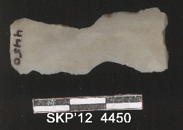 | Description / विवरण | Broken chert blade, the ridges can be clearly seen. The sides are retouched and it is trapezium in cross section. |