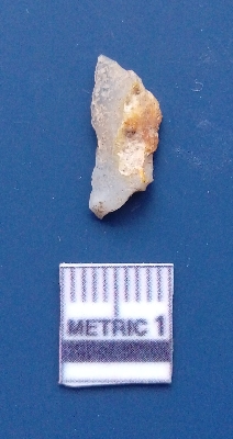 | Description / विवरण | It is a blade fragment with two sharp parallel sides and lateral margin with the working edges. The bulb of percussion is present ventral side with ripple on it due to flaking. It has flake scars on the surface. |