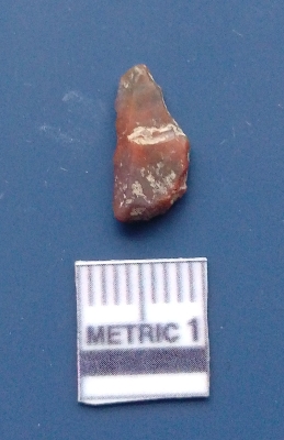| Description / विवरण | It is a blade fragment with two sharp parallel sides and lateral margin with the working edges. The bulb of percussion is present ventral side with ripple on it due to flaking. It has flake scars on the surface. |