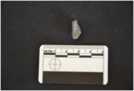 | Description / विवरण | Chert scraper has a ridge on dorsal side, striking platform, bulb with errailure on ventral side and retouches on working edge. |