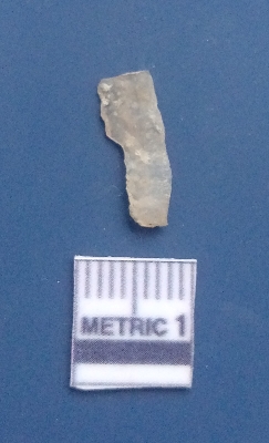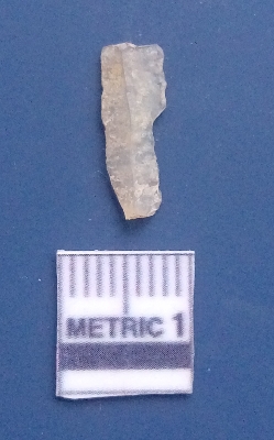 | Description / विवरण | It is a blade fragment with two sharp parallel sides and lateral margin with the working edges. The bulb of percussion is present ventral side with ripple on it due to flaking. It has flake scars on the surface. |