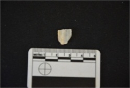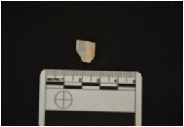 | Description / विवरण | Blade made on chalcedony, use wear marks seen, bulb of percussion present, broken at the distal end |