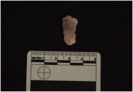 | Description / विवरण | Blade made on chert, use wear marks seen, bulb of percussion seen |