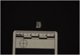 | Description / विवरण | Fragment of blade made on chalcedony, broken at the distal end, |
