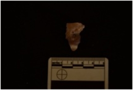 | Description / विवरण | Chalcedony utilized flake has a midridge on dorsal side, striking platform, diffused bulb on ventral side, use wear marks on working edge and row-material given heat treatment. |