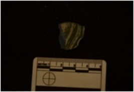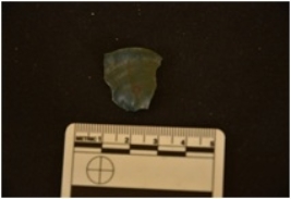 | Description / विवरण | Chert utilized flake has a ridge on dorsal side, striking platform bulb with errailure on ventral side and use wear marks on working edge. |
