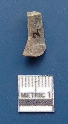 | Description / विवरण | It is a flake. The flake scars are clearly seen on the dorsal surface and the ventral surface is plain. The lateral sides are sharp. It is brownish in colour. |