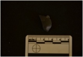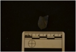 | Description / विवरण | Chert utilized flake has ridges on dorsal side, striking platform, bulb on ventral side, broken from distal end use-wear marks on working edge. |