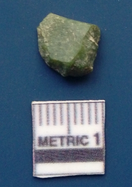 | Description / विवरण | It is a blade fragment. The ridges are clearly seen on the dorsal surface and the ventral surface is plain. The lateral sides are sharp. It is greenish in colour and is triangular in cross - section. |