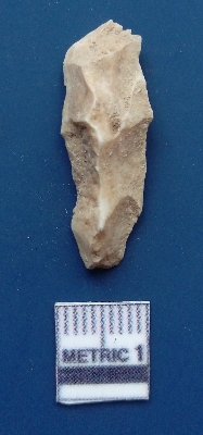 | Description / विवरण | It is a flake. The flake scars are clearly seen on the dorsal surface and the ventral surface is plain. The sides are sharp. The soil incrustations are clearly seen. |