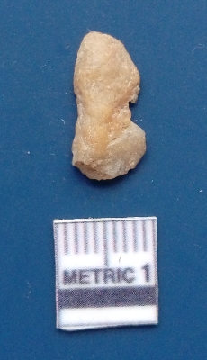 | Description / विवरण | It is a flake. The flake scars are clearly seen on the dorsal surface and the ventral surface is plain. The sides are sharp. The soil incrustations are clearly seen. |