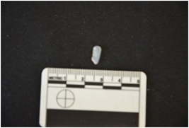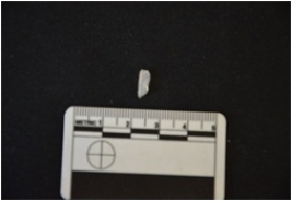 | Description / विवरण | Fragment of a blade made on chalcedony, brokn at the proximal end, use wear marks seen |