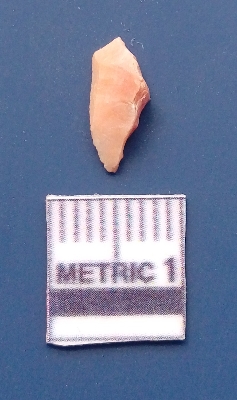 | Description / विवरण | It is a lunate. The ridges are clearly seen on the dorsal surface while the ventral surface is plain. It is orangish in colour and the sides are sharp. |