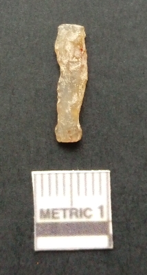 | Description / विवरण | It is a blade fragment. The ridges are clearly seen on the dorsal surface while the ventral surface is plain. The sides are sharp and is retouched. |