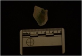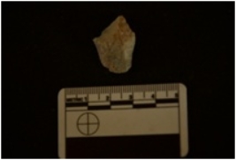 | Description / विवरण | Chert utilized flake has flake scars on dorsal side, striking platform, bulb on ventral side and use-wear marks on working edge. |