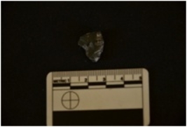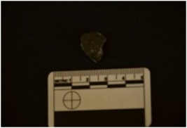 | Description / विवरण | Chert scraper has flake scars on dorsal side, striking platform, diffusely bulb on ventral side and partly retouched on working edge. |