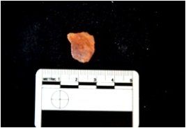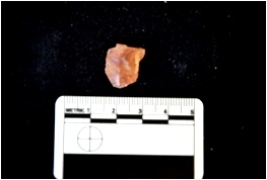 | Description / विवरण | Flake struck on chert, use wear marks on all three sides, bulb of percussion visible |