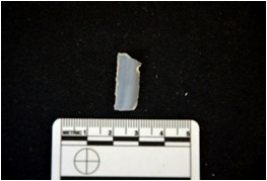 | Description / विवरण | Fragement of a parallel sided blde made on chalcedony, use wear marks seen on both edges, broken at both ends |