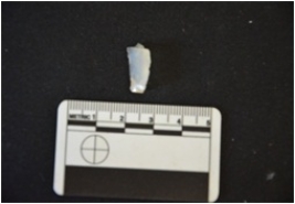 | Description / विवरण | Blade made of chalcedony, use wear marks seen on both edges, bulb of percussion visible |