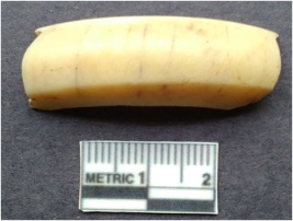 | Description / विवरण | The cowrie shell is intact with its central prominent grooves and convex back. The shell is pale white in color and has smooth surface. The shell was used variously as ornament, decorative piece, toy as gamesman and also as votive or sacred object since the historic period. |