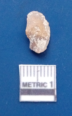 | Description / विवरण | It is a flake. The flake scars are clearly seen on the dorsal surface while the ventral surface is plain. The sides are sharp. It is brown in colour and the soil incrustations are clearly seen. |