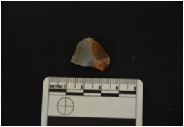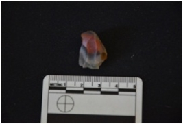 | Description / विवरण | Utilised core of agate, flake scars on the both sides, use wear marks on both edges |