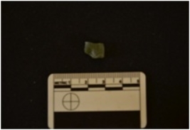 | Description / विवरण | Fragment of chert bangle has two ridges on dorsal side, striking platform, bulb on ventral side, broken from distal end and use-wear marks on cotting edge. |