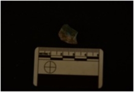 | Description / विवरण | Chert utilized flake has flake scars, striking platform and use-wear marks on working edge. |