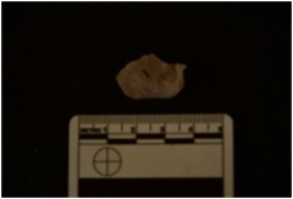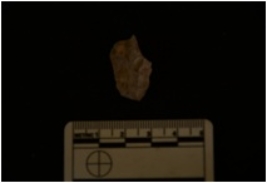 | Description / विवरण | Chert utilized flake has flake scars on dorsal side, striking platform, diffused bulb on ventral side and use-wear marks on working edge. |
