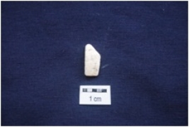 | Description / विवरण | Shell bangle fragment having powdery surface and uneven cross-section. |
