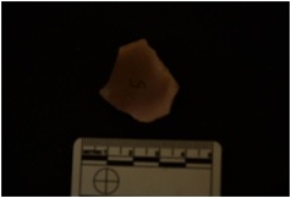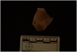 | Description / विवरण | Chert utilized flake has flake scars on dorsal side, striking platform, absent bulb and use wear marks on working edge. |