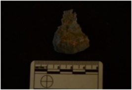 | Description / विवरण | Chert utilized flake has flake scars, striking platform, bulb on ventral side and use-wear marks on working edge. |