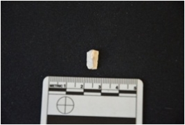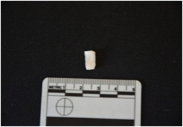 | Description / विवरण | Fragment of blade made on chert, broken at both ends, use wear marks seen on both edges |