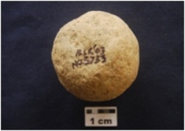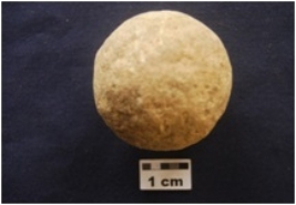 | Description / विवरण | A round hammer stone with bruise mark all around. |