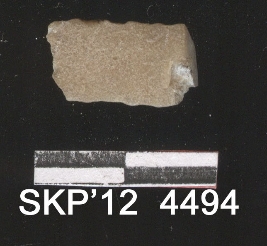 | Description / विवरण | Broken chert blade, the ridges can be seen and the sides are retouched. It is trapezium in cross section, the ventral surface is plain. |