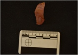 | Description / विवरण | Fragment of Blade, Distal end is broken, Bulb of percussion on the ventral Surface, Sharp working edge. |