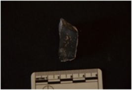 | Description / विवरण | A chert - quartz utilized flake has a midridge and quartz particals on dorsal side, striking platform, bulb on ventral side, broken from distal end, use-wear marks on working edge and triangular cross-section. |