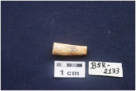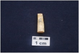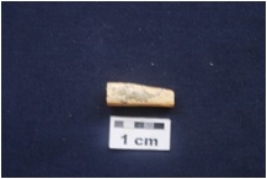 | Description / विवरण | Fragment of bone point, narrow and flattened on one side, partly smooth surface and circular cross-section. |