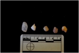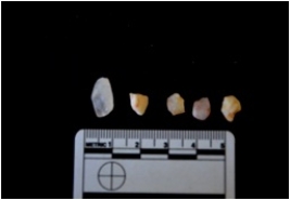 | Description / विवरण | Fragments of blades made from chalcedony, use wear marks seen |