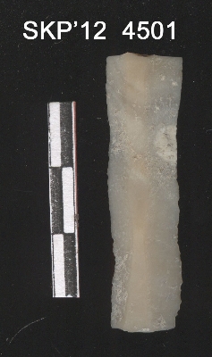 | Description / विवरण | Broken chert blade. It is long and rectangular in structure. The ridges can be clearly seen. It is trapezium in cross section. The sides are rectangular and the ventral surface in plain. |