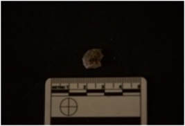 | Description / विवरण | Chert utilized flake has striking platform, bulb on ventral side and use-wear marks on working edge. |