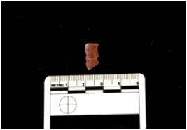| Description / विवरण | Flake made on chert, use wear marks visible, bulb of percussion seen |