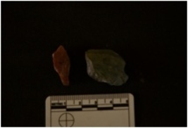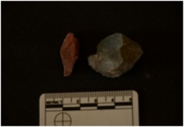 | Description / विवरण | Carnelian utilized flake has striking platform, bulb with errailure on ventral side, flake scars on dorsal side and use wear marks on working edge. |