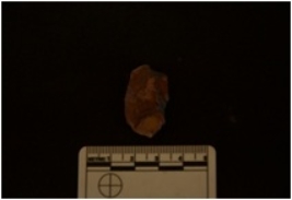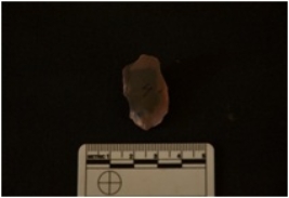 | Description / विवरण | Chert utilized flake has cortex and flake scars on dorsal side, striking platform bulb with errailure on dorsal ventral side and use wear marks on working edge. |