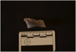| Description / विवरण | Chalcedony utilized flake has striking platform, bulb on ventral side, use wear marks on working edge and raw material given heat treatment. |