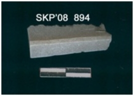 | Description / विवरण | Broken chert blade. The ridges can be seen clearly. Also the retouch can be seen on one side. It is rectangular in structure and triangular in cross section. The ventral side is plain. |