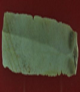 | Description / विवरण | Trench WB 4, pit 2, depth 40 cms It s a chert blade in rectangular shape. Little bit thick in the middle and edges are rough. Surface is smooth and appearance is off white. |