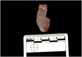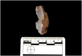 | Description / विवरण | flak struck on chert, use wear marks seen, bulb of percussion visible |